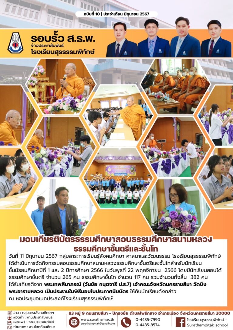 รอบรั้ว ส.ธ.พ.สังคมศึกษา ศาสนาและวัฒนธรรมรอบรั้ว ส.ธ.พ. ฉบับที่ 31 เดือนมิถุนายน 2567 แสดงความยินดีกับนักเรียนที่ได้รับรางวัลความประพฤติดีและการแข่งขันบรรยายธรรม20 กรกฎาคม 256728 กรกฎาคม 2024