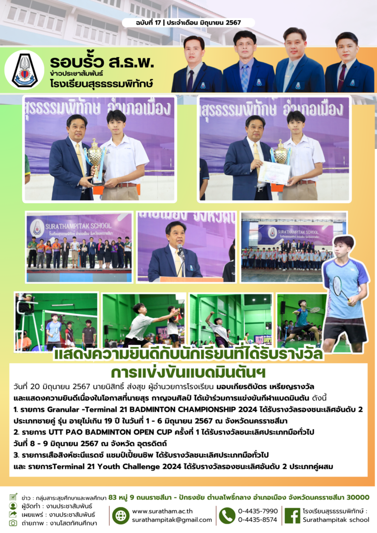 SPORTรอบรั้ว ส.ธ.พ.สุขศึกษาและพลศึกษารอบรั้ว ส.ธ.พ. ฉบับที่ 29 เดือนสิงหาคม 2567 นักเรียนโครงการพิเศษห้องเรียนกีฬาเข้าร่วมการเป็นผู้ช่วยผู้ตัดสินว่ายน้ำร่วมกับสมาคมว่ายน้ำจังหวัดนครราชสีมา30 กันยายน 256730 กันยายน 2024