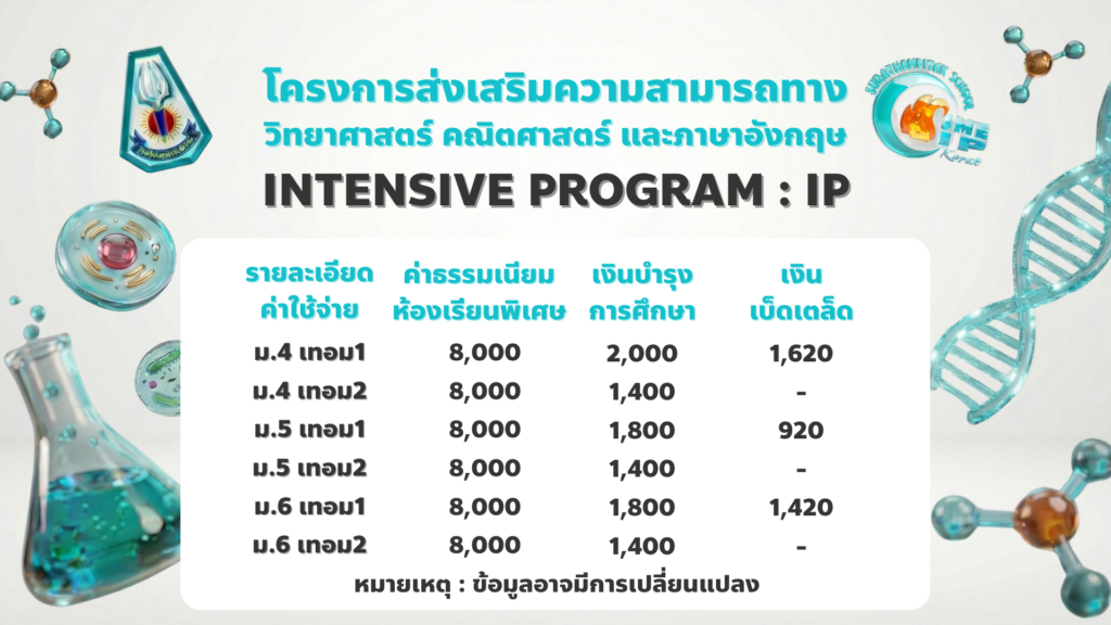 เน้นวิชาคณิตศาสตร์ วิทยาศาสตร์แบบเข้มข้น และวิชาภาษาอังกฤษเพื่อวิทยาศาสตร์และเทคโนโลยี โดยมีทีมครูประจำการที่มีความรู้ ความสามารถ และวิทยากรผู้เชี่ยวชาญจากภายนอก ห้องเรียนมาตรฐาน พร้อมห้องปฏิบัติการคอมพิวเตอร์ สื่อการเรียนการสอน ห้องปฏิบัติการที่ทันสมัย มีอุปกรณ์ครบครัน กิจกรรมเสริมหลักสูตรที่หลากหลาย ส่งเสริมผู้เรียนให้พัฒนาตรงตามศักยภาพ