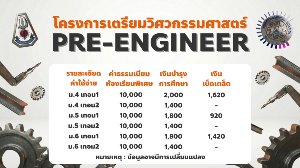 ติดต่อสอบถามข้อมูลเพิ่มเติม : FACEBOOK PAGE โครงการ Pre-Engineer Suratham