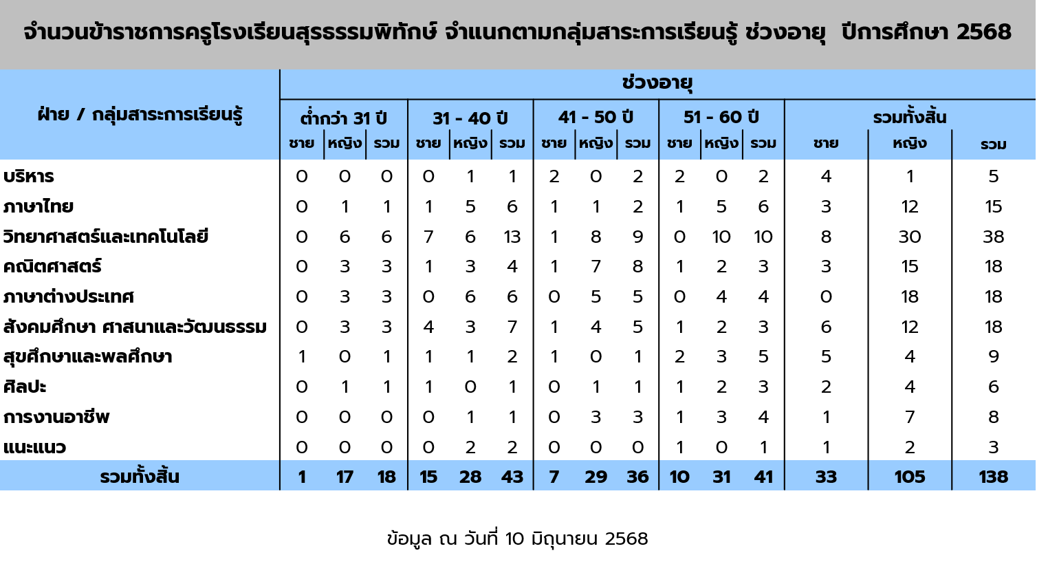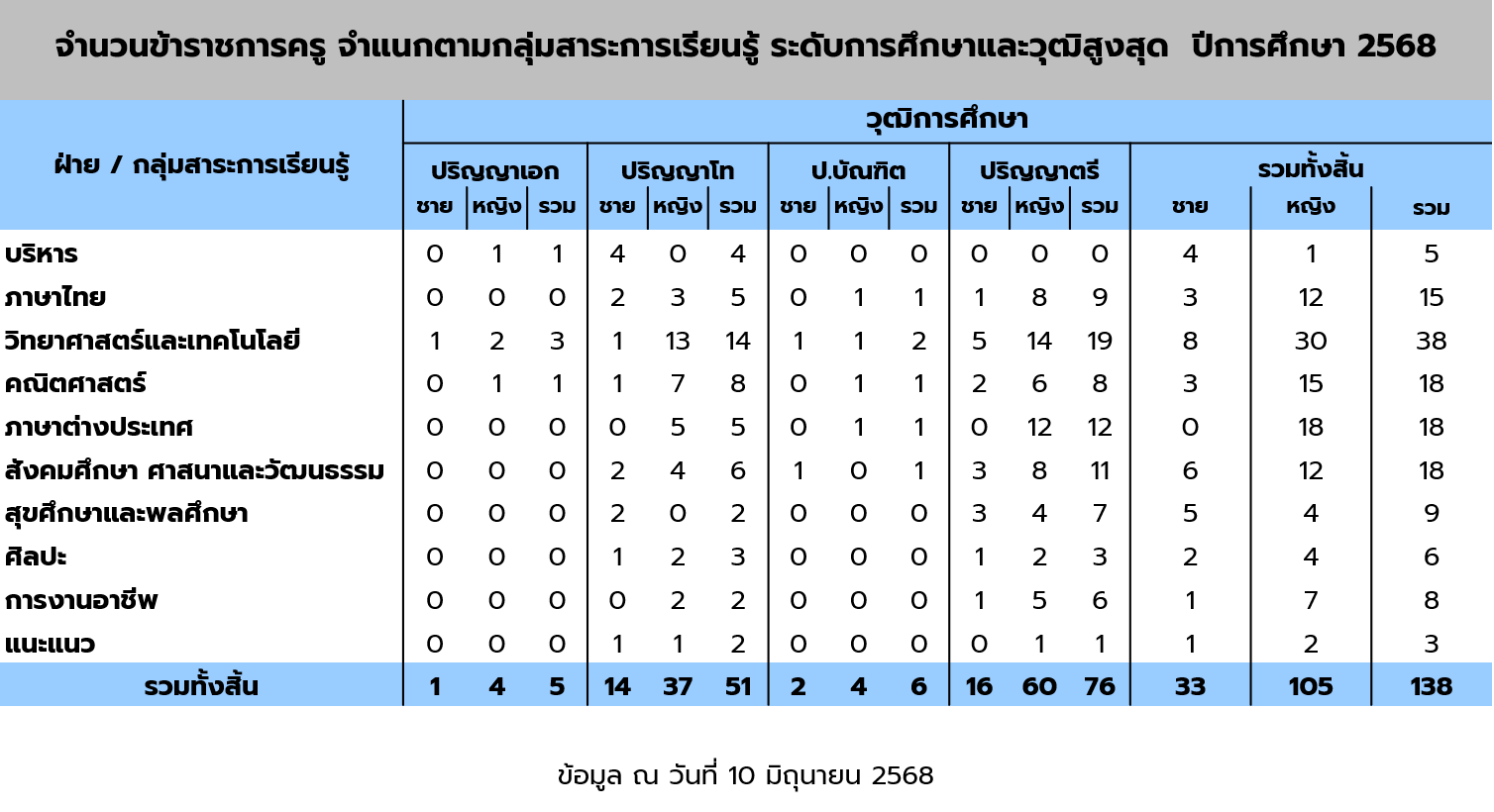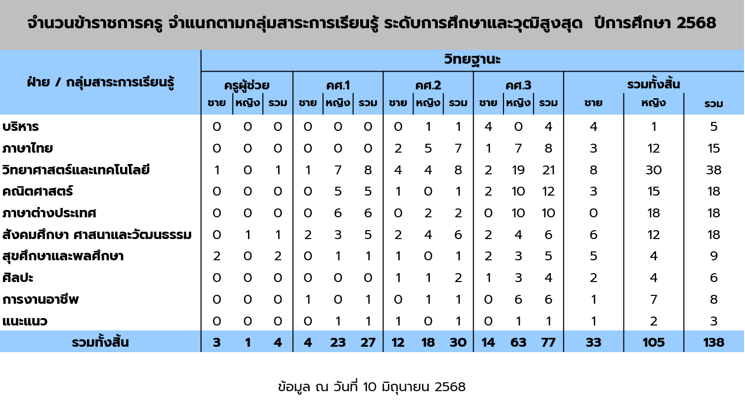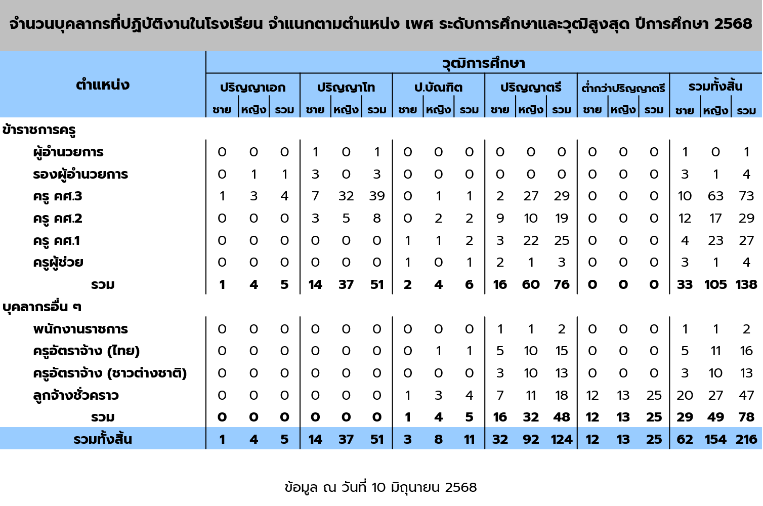 ข้อมูลครูและบุคลากร ปีการศึกษา 2568